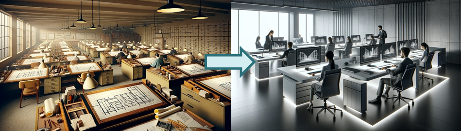 When my colleague Shaun Russell, Associate Technical Director, describes his formative years as an Architect, design processes were analogue and entirely reliant on paper. Design drawings, contracts, invoices and QA/QC paperwork were all physical, paper-based records. Each office had records room filled with folded drawings, carbon copy paper, and old records. Designers used drawing boards, set squares, scale rulers, and rotring pens to create design information. Shaun’s early years as an architect required him to literally go back to the drawing board when clients changed their minds. Urgent communication was sent via fax.